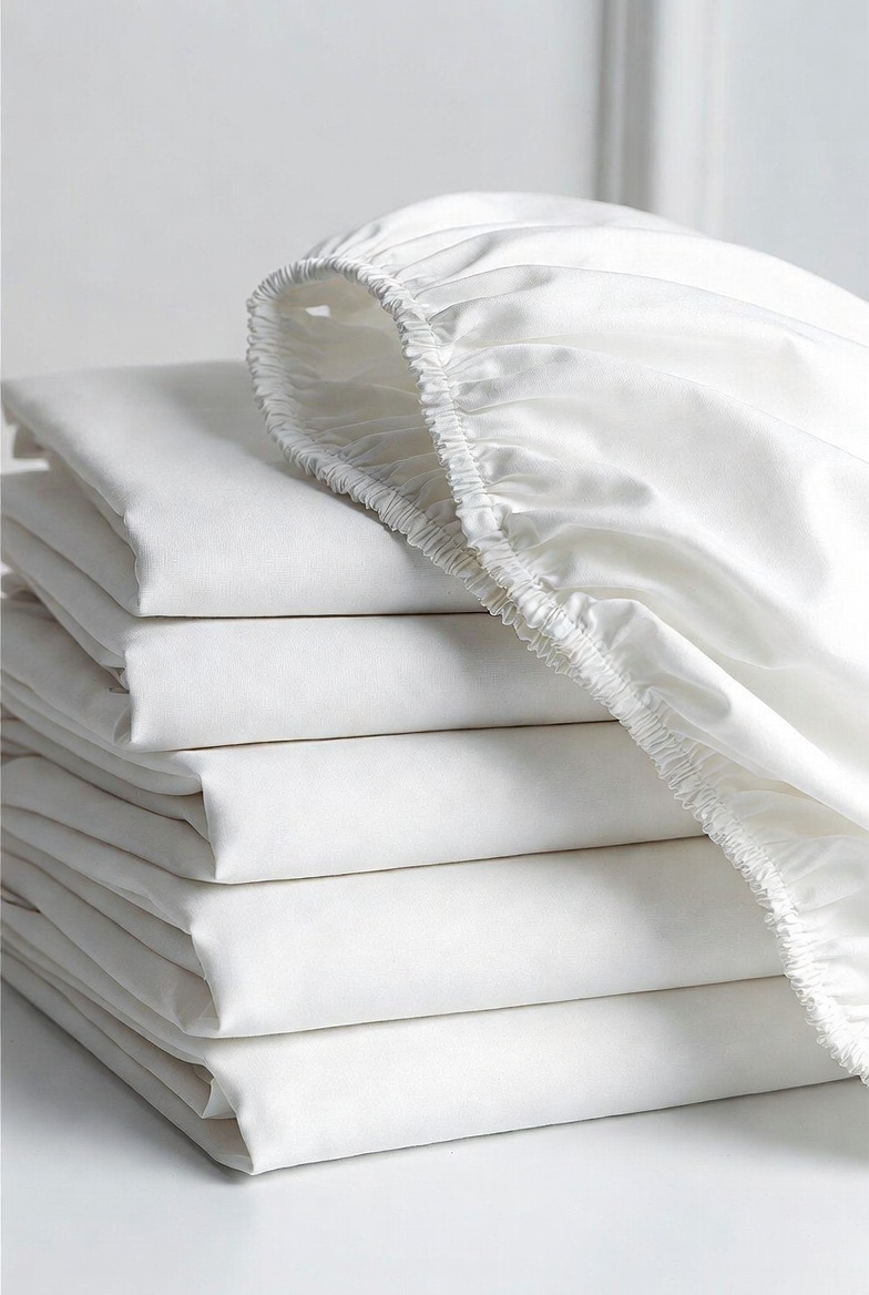 Set de 6 sábanas bajeras ajustables blancas para cama de 150 cm, en medida 150×200 cm, confeccionadas en tejido 50% algodón y 50% poliéster, que ofrece suavidad, resistencia y fácil mantenimiento. Gracias a su ajuste elástico, se adaptan perfectamente al colchón proporcionando comodidad y sujeción. Ideales para uso doméstico y profesional, destacan por su durabilidad y fácil lavado, manteniendo un aspecto impecable uso tras uso.