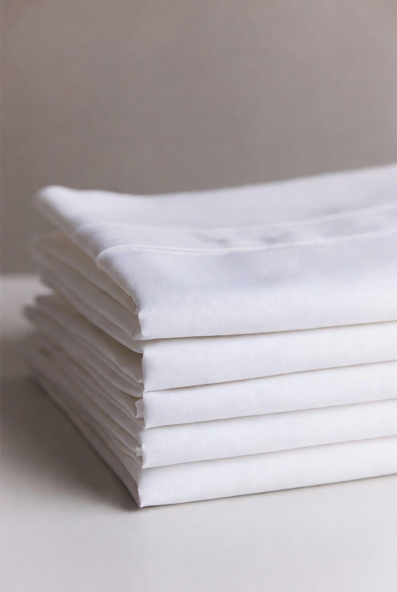 Set de 6 sábanas encimeras blancas de 90 cm, en medida 160×275 cm, confeccionadas en tejido 50% algodón y 50% poliéster, que combina suavidad, resistencia y fácil mantenimiento. Ideales para uso doméstico y profesional, ofrecen gran durabilidad, buena transpirabilidad y menor formación de arrugas, manteniendo su aspecto impecable lavado tras lavado.