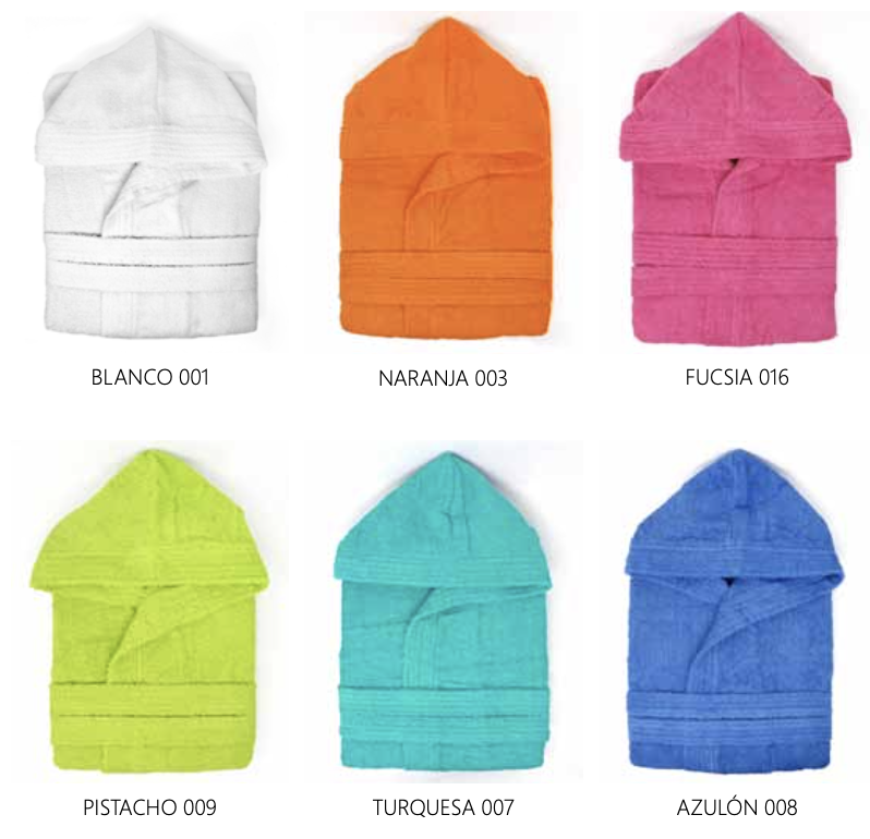 Albornoz infantil de rizo con capucha, confeccionado en 100% algodón de 400grm2. Este albornoz es suave, absorbente y perfecto para mantener a los niños cómodos y abrigados después del baño. Su capucha añade un toque extra de confort y protección. Ideal para los más pequeños, ofreciendo calidad y calidez en cada uso. Tallas 2/4, 6/8, 10/12 y 14.