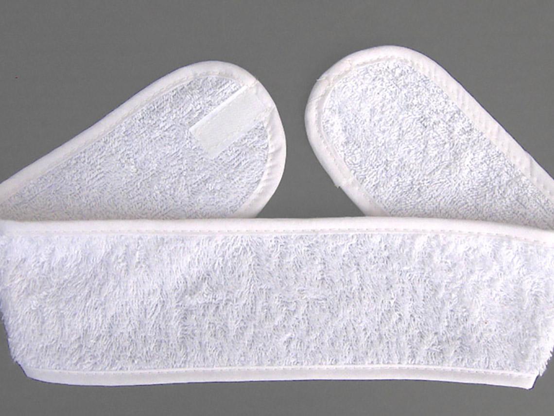 Diadema para el pelo con cierre de velcro, confeccionada en rizo americano 100% algodón. Suave, absorbente y cómoda, ideal para uso profesional en estética, peluquería o para el cuidado diario en casa.