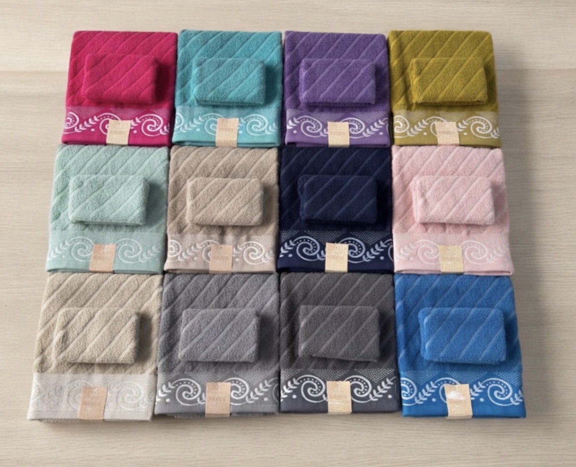 Juego de 2 toallas de jacquard con cenefa, confeccionadas en 100% algodón con un gramaje de 420 g/m², que ofrece buena absorción, suavidad y resistencia para el uso diario. El set incluye una toalla de 40×60 cm y otra de 55×105 cm, ideales para completar el baño con estilo. Disponible en un gran surtido de colores, combina diseño decorativo y funcionalidad en una opción práctica y versátil.