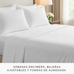 Vista su cama con elegancia y confort con nuestro Juego de Sábanas Blancas PERCAL de 200 hilos, con una calidad excepcional de 50% algodón y 50% poliéster, tejido de 40×40 y 120×110 hilos. Este completo juego incluye sábana encimera, sábana bajera ajustable y funda de almohada, todas garantizadas y de alta calidad. Escoja las opciones que más le interesen y solicite un presupuesto sin ningún compromiso, para disfrutar de la máxima calidad y suavidad en su descanso diario.