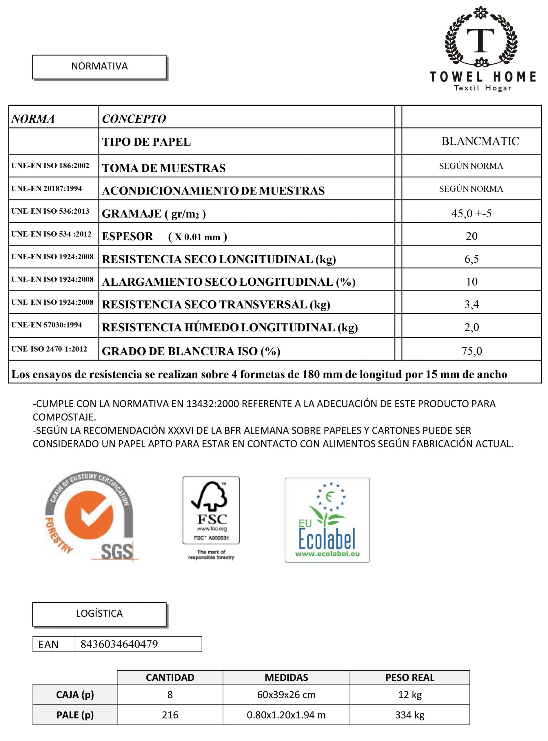 Piezas: Pasta de celulosa, 1 capa + mandril.