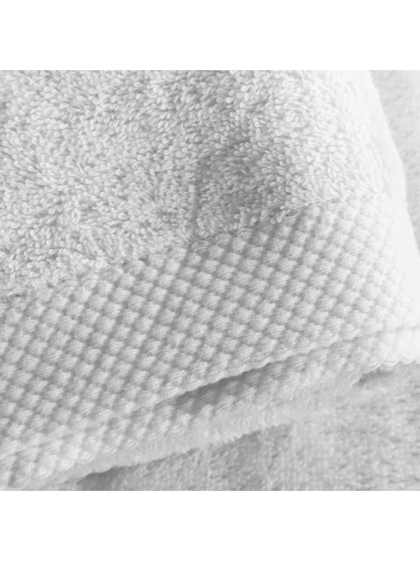 Toalla blanca 500 g/m² confeccionada en rizo americano peinado 100% algodón, que garantiza una suavidad superior, máxima absorción y gran durabilidad. Su gramaje de 500 g/m² ofrece un equilibrio perfecto entre esponjosidad y secado rápido, ideal para uso diario en el hogar o en entornos profesionales como hoteles y spas.