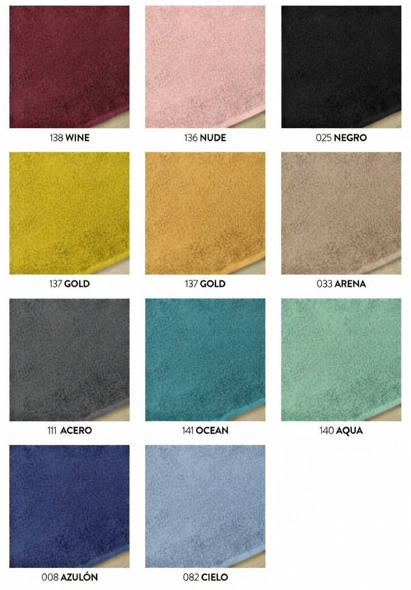 | Colores | Wine, Nude, Negro, Gold, Arena, Acero, Ocean, Aqua, Blanco, Azulón, Cielo |