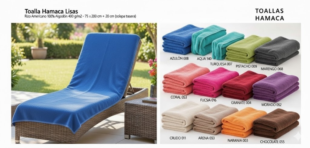 Fabricada en rizo convencional de 100% algodón con un gramaje de 480 g/m², ofrece alta absorción, suavidad y durabilidad. Su tintura Indanthren garantiza una mayor resistencia al lavado y conservación del color. Disponible en azulina y yema.