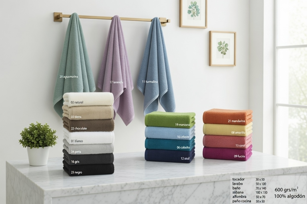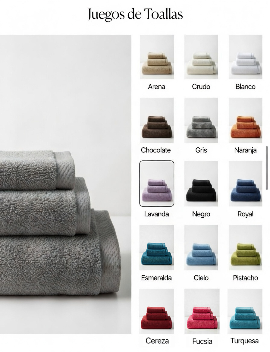 Disfrute de una suavidad excepcional con nuestras Toallas de Rizo Americano de algodón 100% peinado, diseñadas para ofrecer máxima absorción y durabilidad. Con una calidad de 600 gr/m², su tejido denso garantiza resistencia y un tacto agradable en cada uso.