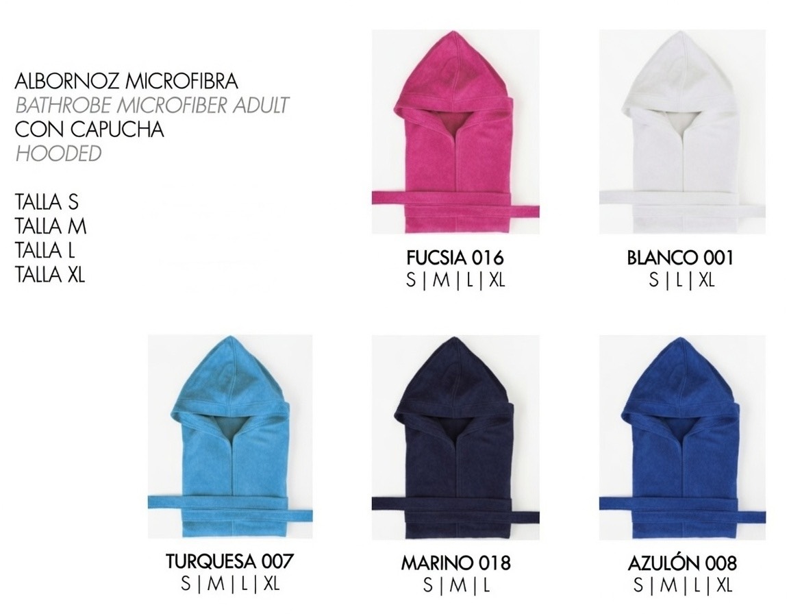 Sumérgete en el lujo y la comodidad con nuestro Albornoz de Microfibra, diseñado con un exquisito acabado Piel de Melocotón en 80% poliéster y 20% poliamida. Su textura ultra suave y su alta capacidad de absorción te envuelven en una sensación inigualable de bienestar. Confeccionado con la máxima calidad, cada detalle ha sido cuidadosamente diseñado para ofrecerte una experiencia única de confort y elegancia. Disponible en una vibrante gama de colores: Turquesa, Fucsia, Royal, Navy y Blanco.