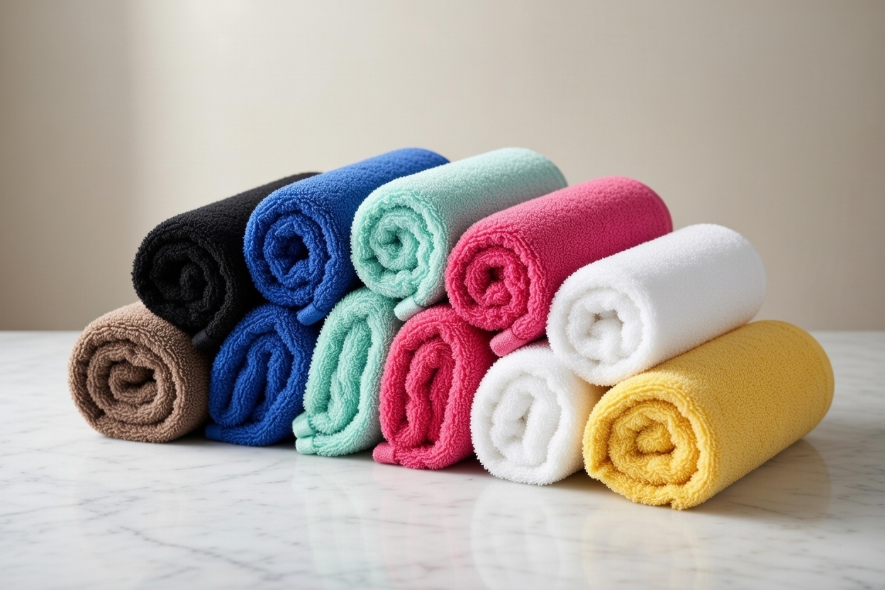 Disponible en una variedad de colores que incluye Blanco, Negro, Beige, Azulina, Piscina, Coral y Amarillo. Elige la combinación que se adapte a tu estilo y necesidades, y disfruta de la durabilidad y versatilidad de esta toalla en tu entorno profesional.