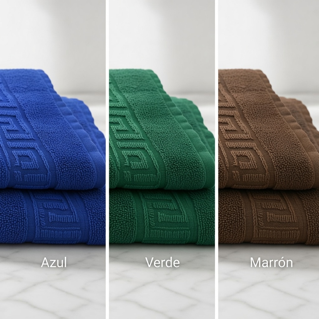 Toalla Cenefa Roma disponible en colores Azul, Verde y Marrón, diseñada para ofrecer el equilibrio perfecto entre estilo, confort y calidad. Confeccionada en tejido Rizo 2/C Algodón REP de 450grm2, garantiza una excelente absorción, suavidad y resistencia al uso diario. Su elegante cenefa inspirada en el estilo romano aporta un toque distintivo, ideal tanto para el hogar como para establecimientos de hostelería que buscan sofisticación y durabilidad en cada detalle.