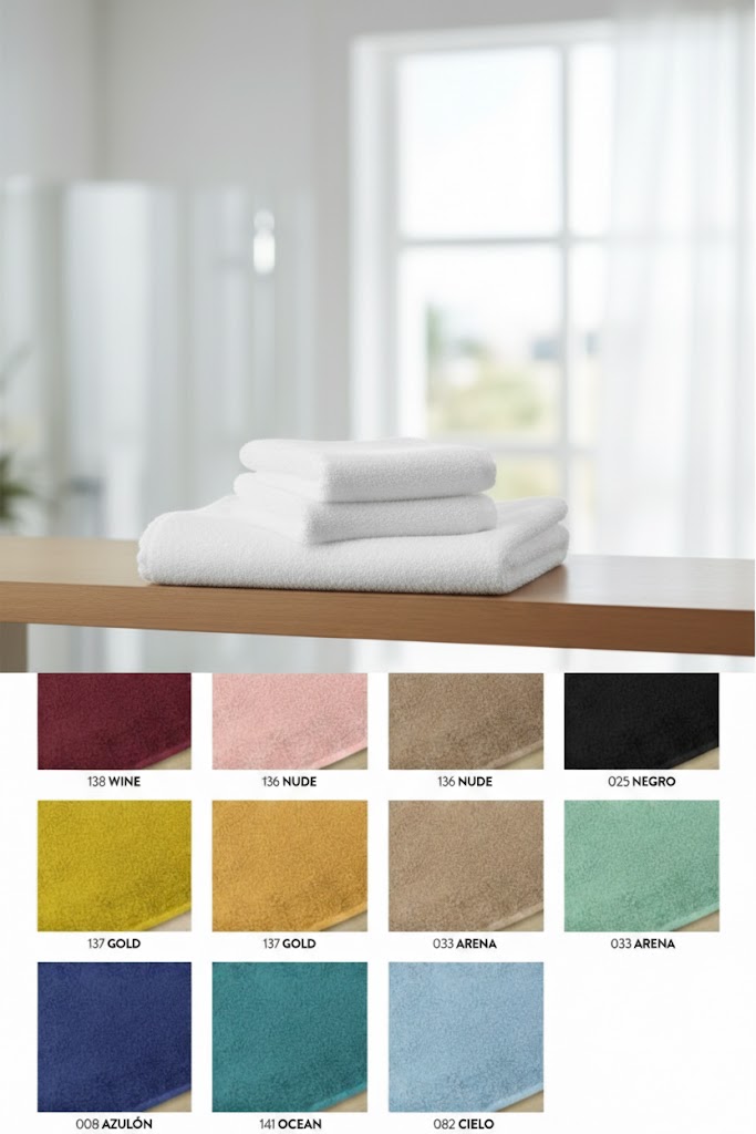 Toalla premium de 550 g/m² fabricada en 100% algodón peinado, que ofrece una excelente absorción, un tacto extra suave y una alta resistencia al uso y a los lavados frecuentes. Su calidad superior la hace ideal tanto para el hogar como para uso profesional en hoteles, spas y alojamientos turísticos. Disponible en más de 20 colores, combina confort, durabilidad y elegancia en una sola toalla.